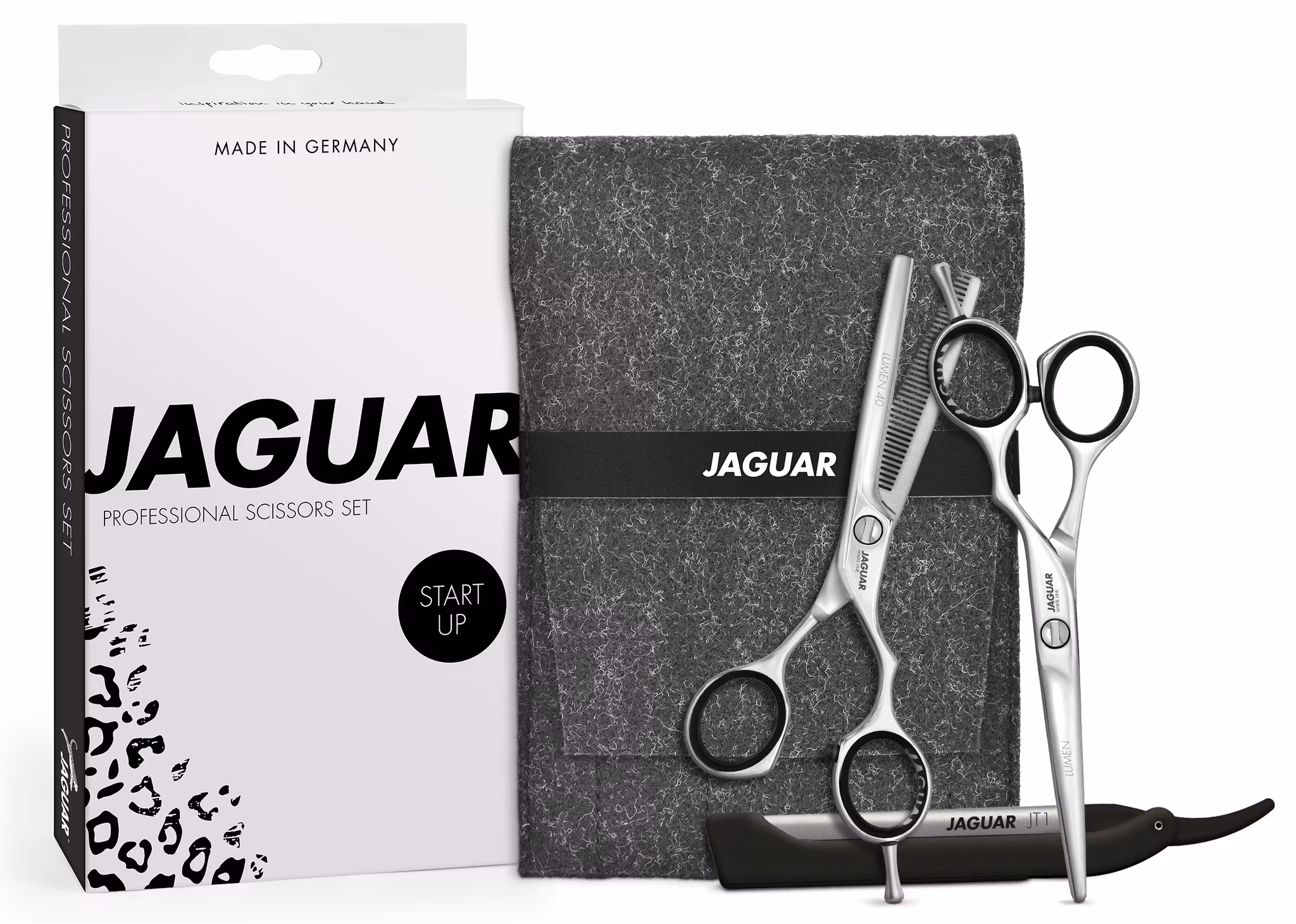 Lumen saxset innehåller klippsax, effilering, Kniv, 10st brytblad samt etui för praktisk förvaring.