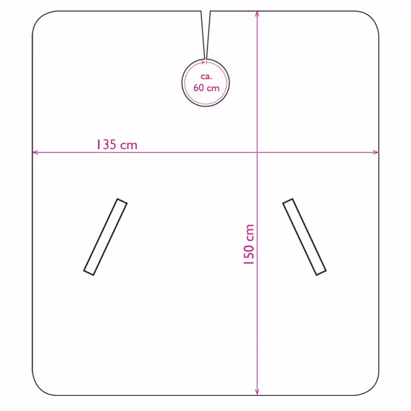 Kappans storlek 135 x 150 cm och är materialet är 100% Polyester.