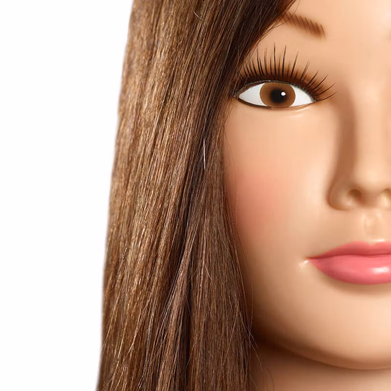 Den perfekta övningspartnern med äkta hår. Med en längd på cirka 35 cm, en mörkblond nyans och högkvalitativt indiskt människohår erbjuder den en idealisk bas för dina kreativa tekniker. Den naturliga virveln ger ett särskilt levande fall. Oavsett om det gäller lugg, folieteknik eller den perfekta finishen – träningshuvudet är redo att förverkliga nya idéer tillsammans med dig. Levereras utan förbehandling och utan stativ.